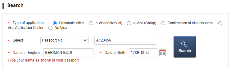 - Masukkan nomor passpor, nama, dan tanggal lahir